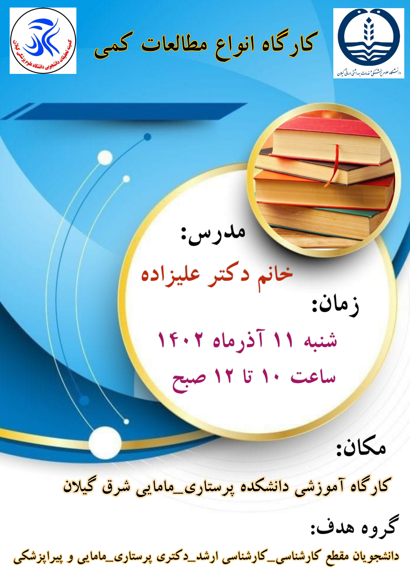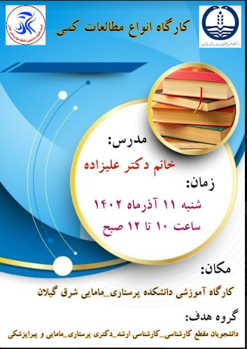 کارگاه آموزشی انواع مطالعات کمی در دانشکده پرستاری مامایی شرق گیلان با مدرسی خانم دکتر شیوا علیزاده برگزار گردید.