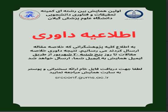 به  اطلاع کلیه پژوهشگرانی که خلاصه مقاله ارسال کردند می رسانیم، نتیجه داوری خلاصه مقالات تا روز پنج شنبه ۲۰